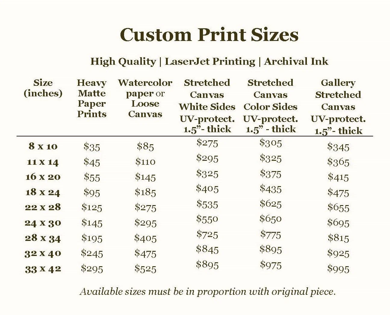 You can custom order any original painting or black and white ink art pieces that are available in print.
